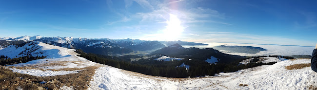 Herrliche Aussicht auf die Alpen des Plateaus und des Jura